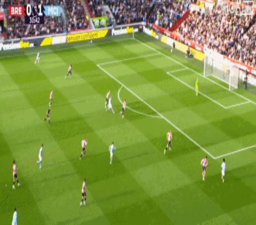 第31分钟,福登无人盯防插上打门,皮球偏出立柱
