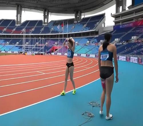 吴艳妮这一枪跑得很稳健,并没有完全发力,但还是稳稳地领先,最终跑出了12秒98的成绩,位列小组第一,并且是预赛总成绩第一。