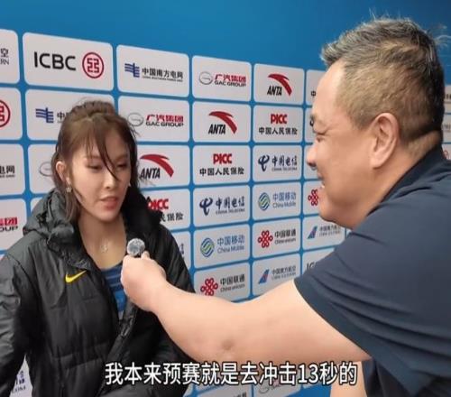 赛后吴艳妮接受采访时表示:“我本来预赛就是去冲击13秒的,12秒98对我来说意义不大。”对于即将到来的决赛,自己最想说什么?吴艳妮为自己鼓劲:“加油,吴艳妮!”