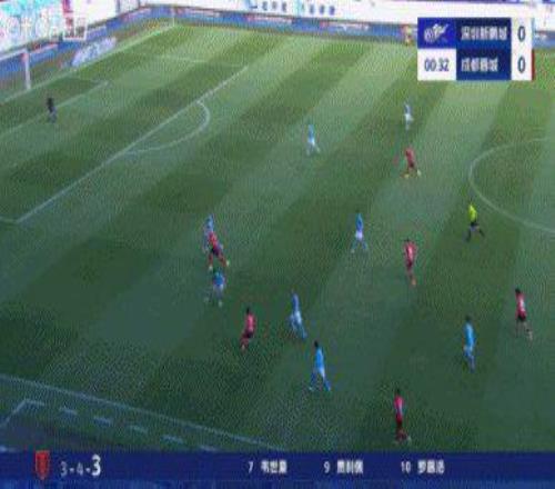 第19分钟,古尔芬克尔左路传中,费利佩头球扳平比分,深圳新鹏城1比1成都蓉城。