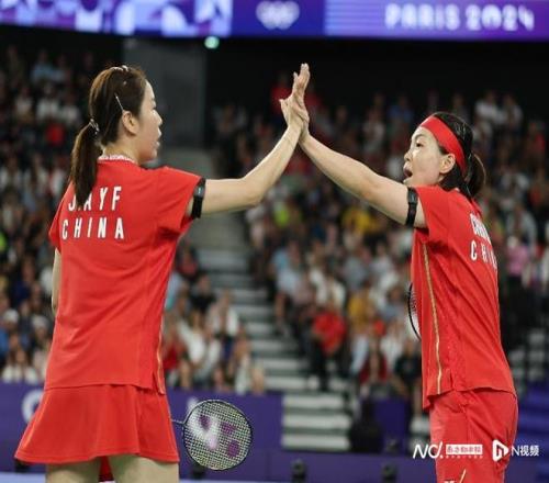陈清晨(右)/贾一凡在比赛中庆祝得分 图源:新华社