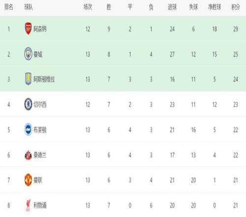 英超第13轮一场比赛,阿斯顿维拉主场1-0战胜狼队,最近8轮联赛取得7胜1负,唯独输给了利物浦,积分榜排名从第18位攀升第3位,稳居前四。