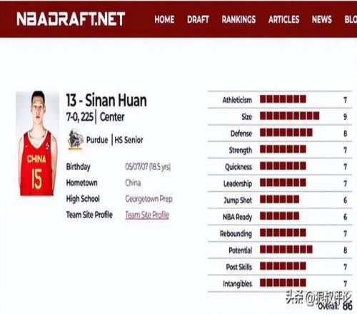 NBAdraft更新郇斯楠球探报告:综合评分86,模板乔尔·普尔兹比拉。