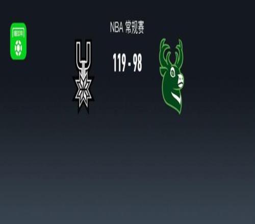 第四节马刺奥利尼克拿下4分,雄鹿科费拿下7分,最终马刺119-98战胜雄鹿