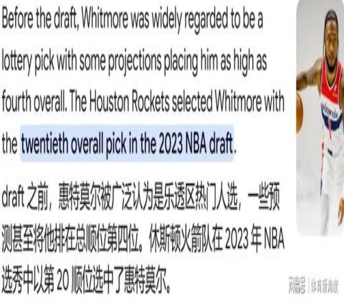 更戏剧的是,原本被预测至少乐透中游的惠特摩尔,一路滑到第20顺位,才被火箭“捡漏”。当时火箭球迷还开玩笑说:“要是调个个儿,4号签选惠特摩尔,20号签选阿门,也挺和谐。”